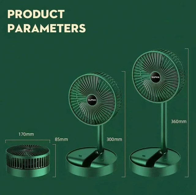 🔄 ফোল্ডিং ডিজাইন: এই ফ্যানটি ফোল্ডিং স্টোরেজ ডিজাইনসহ আসে, যা সহজেই ভাঁজ করে সংরক্ষণ করা যায়।